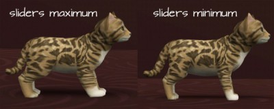 Met deze mod kan je met een aantal nieuwe sliders in sim creeëren de benen van je huisdieren aanpassen.